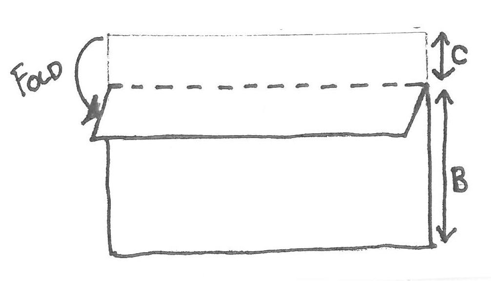 1: Fold down the top edge of your fabric piece the amount of measurement C. (I generally iron in all my folds to keep it tidy, but if your fabric is agreeable you can just fold and skip ironing)