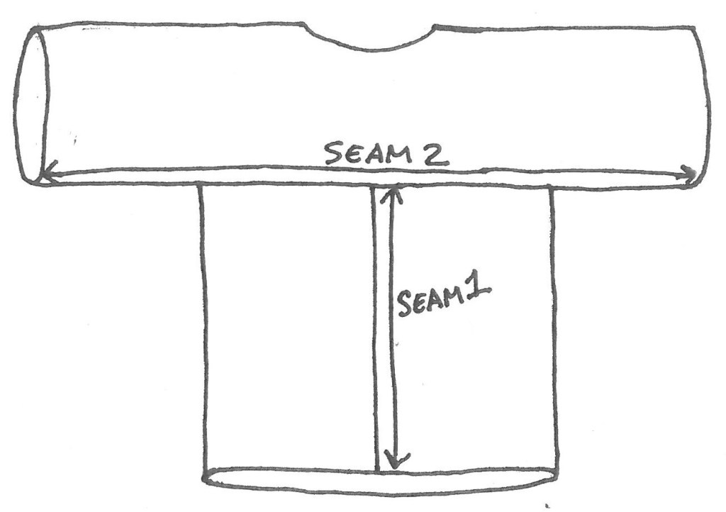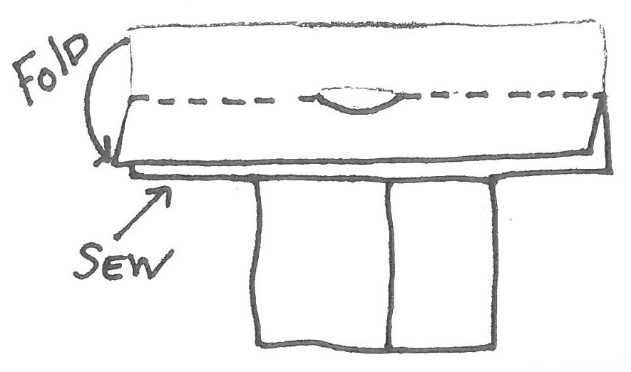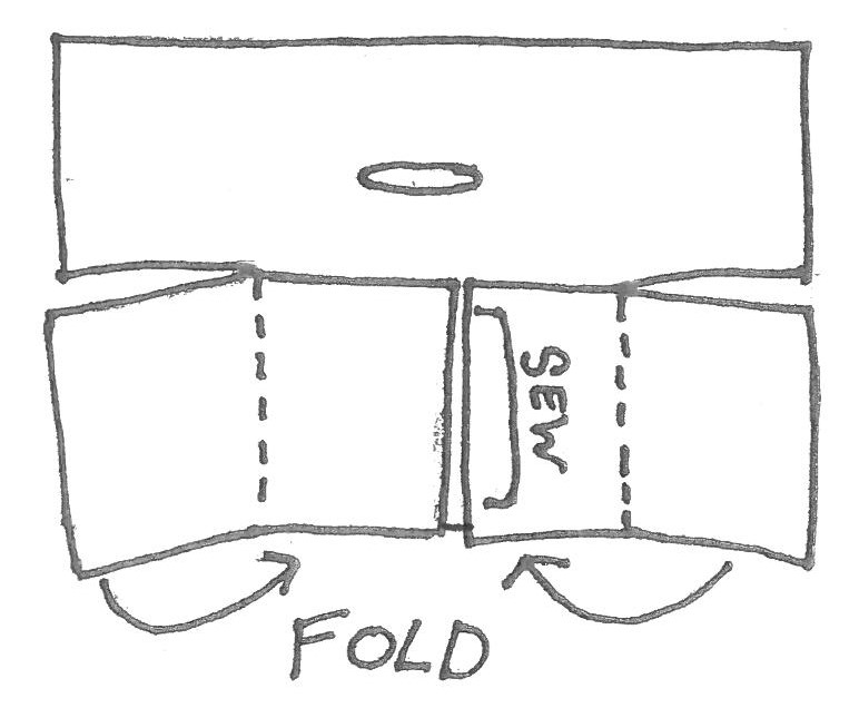 2: Fold down the top section (C), pin and sew, creating a single long seam from one sleeve edge, catching the top of the first section sewn, and ending at the other sleeve edge.