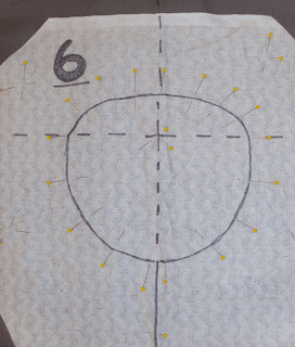 Facing fabric with the neck hole pattern laid out and ready to be marked.