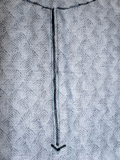 Now that you have the neck hole and slit marked, this can be a great point to add any fancy work, like embroidery, to your facing.