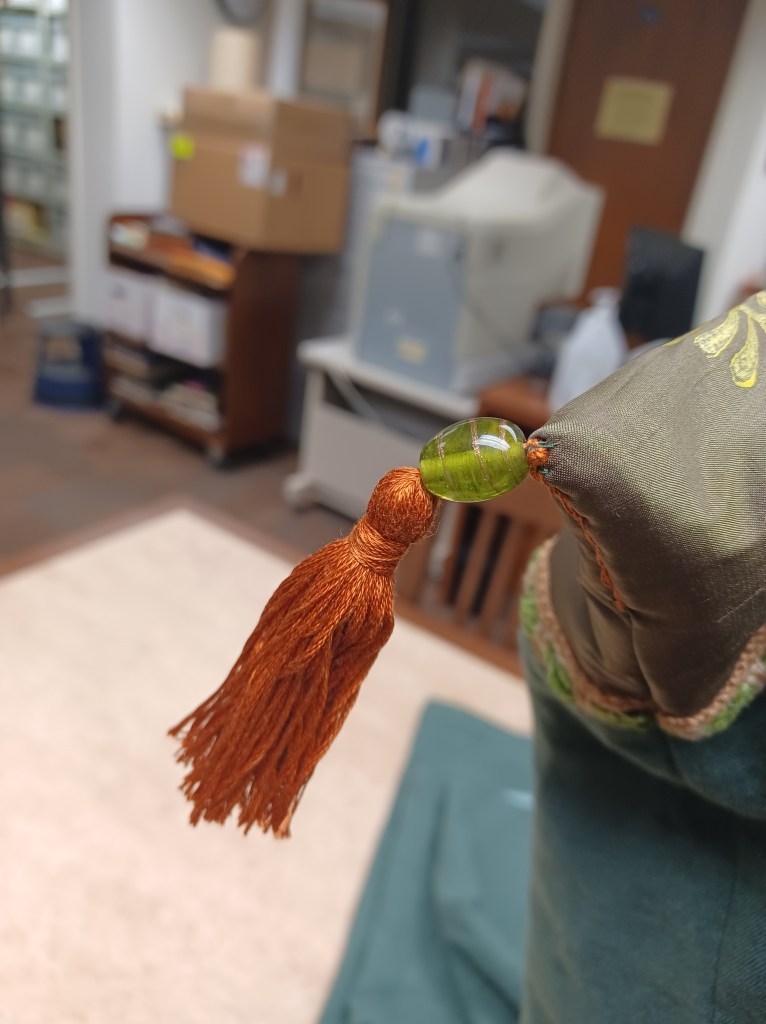 6. The Cap of Maintenance is made from hand spun and hand woven wool (Doesn’t that sound impressive? I neither wove it or spun it, nor do I know who did. I just happened to luck upon someone’s first weaving project while thrifting!), lined with white linen stamped with ermine.