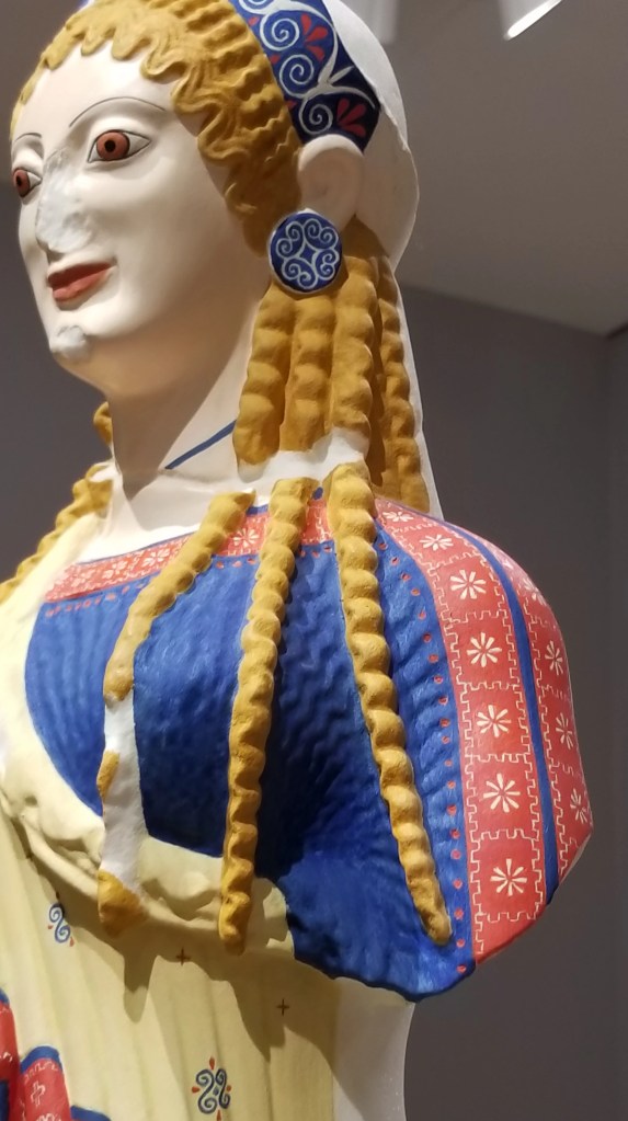 Personally, I was positively gleeful when I saw the colors, as I have long been inspired by the exhibit “Gods in Color: Polychromy in Antiquity”.