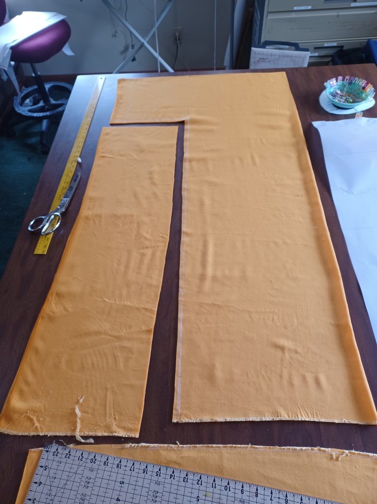 *Mea Culpa time: This is actually the second Tunica I cut. I had cut the first Tunica out and was just about to pin on the Clavii when I thought to double check my measurements. At that point I realized I had cut the Tunica with the same amount of wearing ease we used for His Majesties cotehardies.