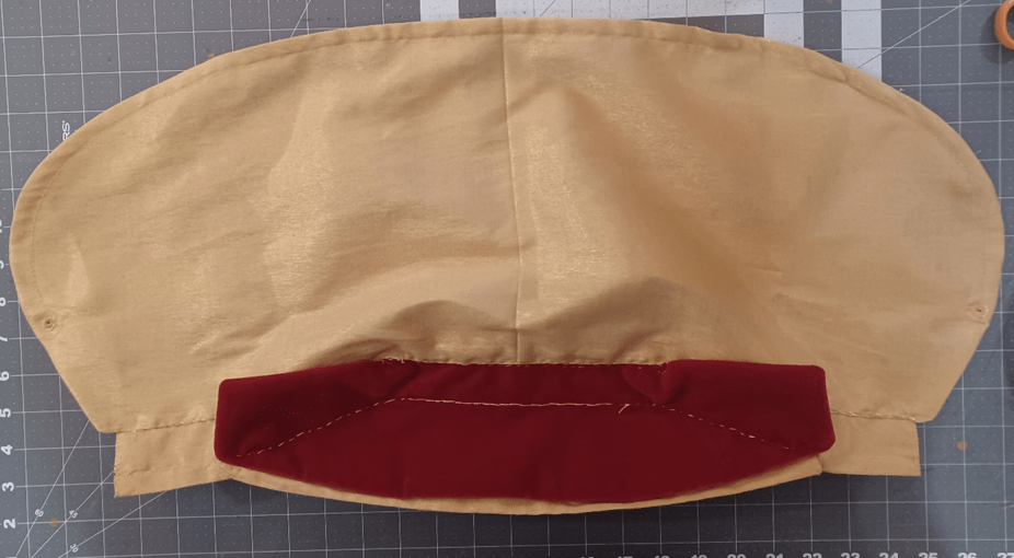 I used a velveteen for the lining of the main “crown” sections on both goldhaubs. I have found that velvet or velveteen linings on headwear can do a wonderful job of keeping stuff “stuck-on” to the head, almost like Velcro, and find it useful to incorporate when and where I can for added ease of wear.